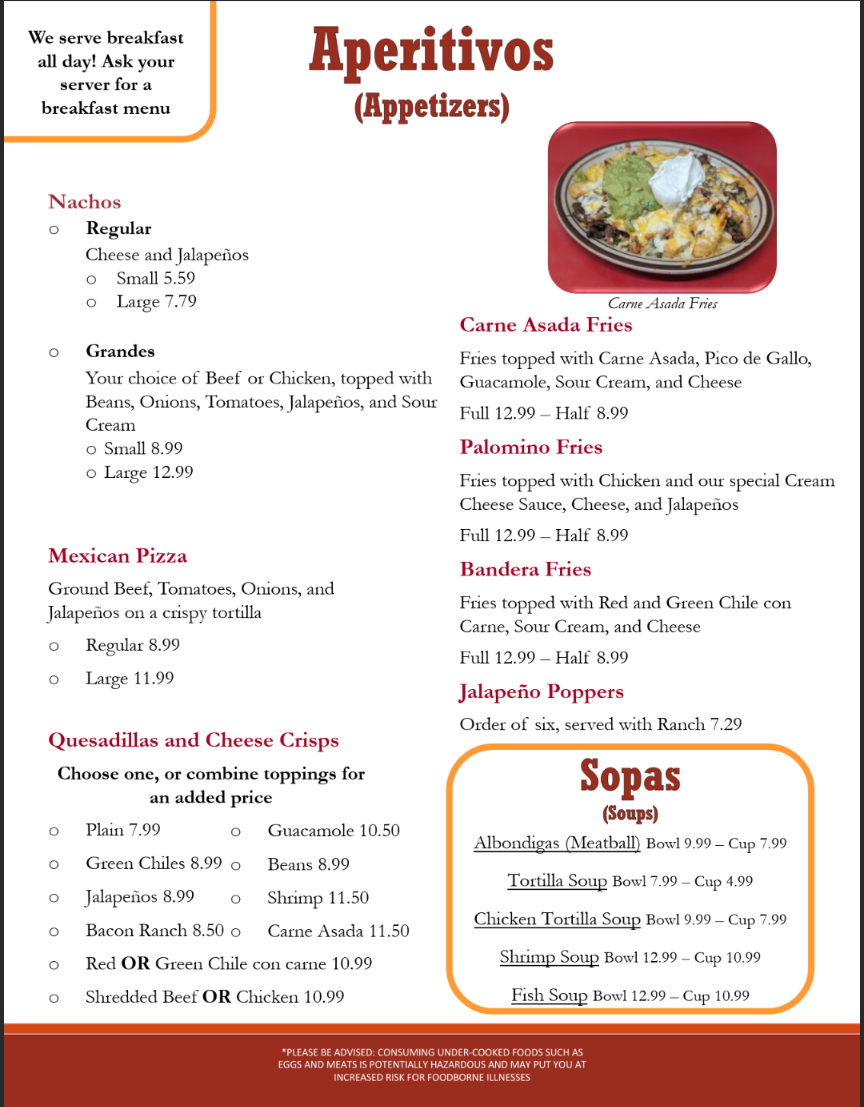 Welcome to Casa Palomino Mexican Restaurant, a hidden gem located at 1076 N Arizona Blvd in Coolidge, AZ. This vibrant eatery offers an inviting blend of traditional Mexican flavors and modern comforts. Each dish reflects a passion for authenticity, from the Chile Relleno to the flavorful Beef or Chicken Flautas, perfectly paired with rich guacamole.